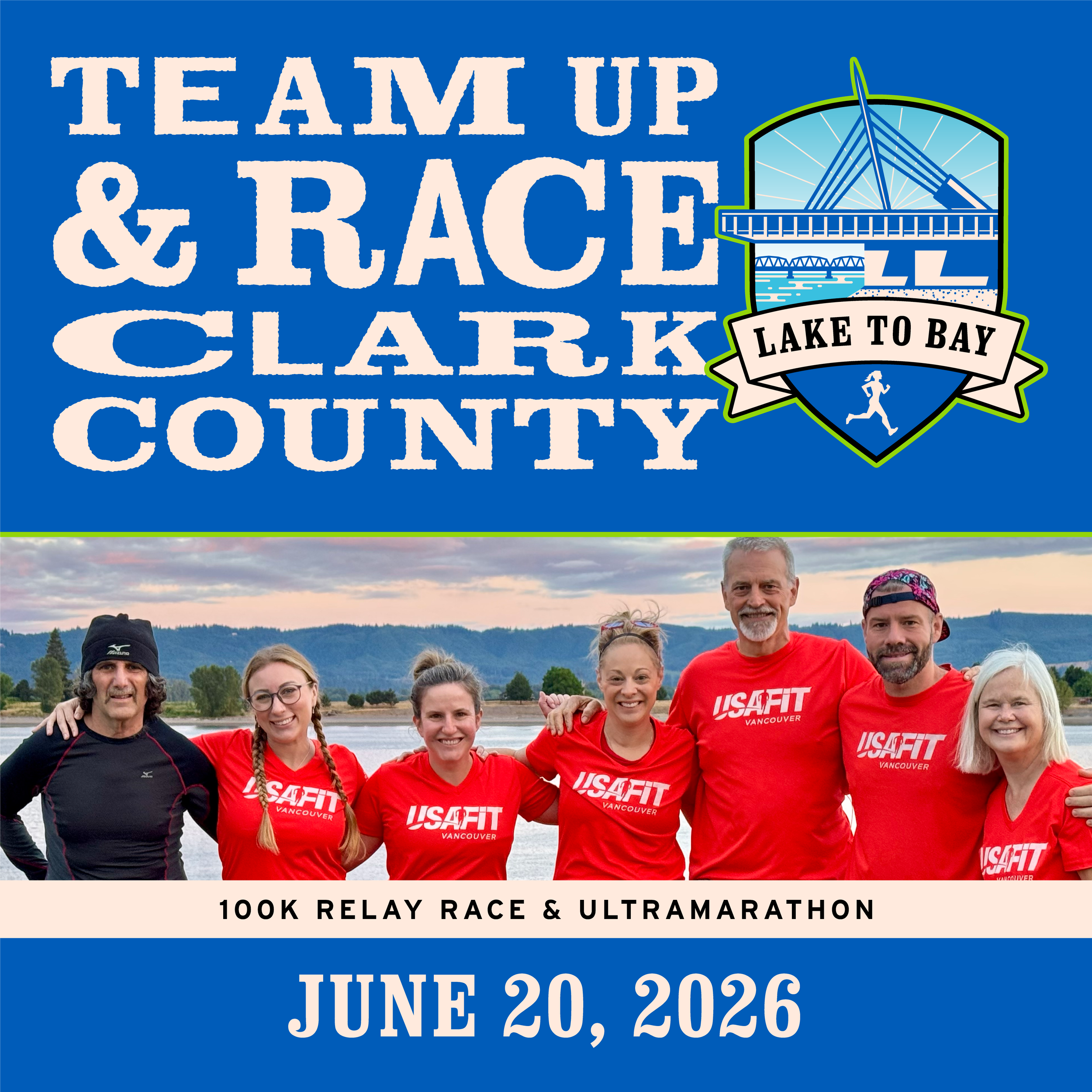 Lake to Bay is a single-day, 1-7 person team, 62.2-mile (100k) relay or ultramarathon event venturing through the beautiful cities of Vancouver and Camas, Washington. Teams begin their journey in waves departing every 30-minutes from Frenchman’s Bar Regional Park, run to downtown Vancouver, then loop clockwise around Clark County, finishing along the Old Evergreen Highway, and into the newly developed Vancouver Waterfront! There are 15 segments/legs for an average of 12-miles per person on a 5-person team.